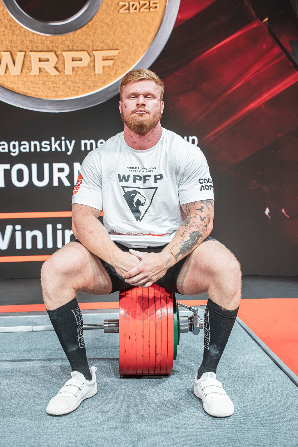 План: два мировых рекорда! 1. Становая тяга: Колтон нацелен на больше 500 килограммов! 2. Сумма в наколенниках: Хочет выжать абсолютный максимум, который перевернет игру в современном пауэрлифтинге.