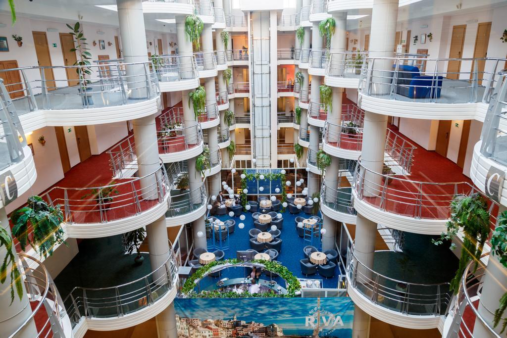 Небольшое озеро, ручей, водопад, скульптура совы, большая черепаха и волшебный Серебряный шар создают неповторимый колорит этому месту. В теплое время года гости отеля с комфортом могут провести время на летней веранде ресторана «БУБО БУБО» с видом на «Дворик-сад».